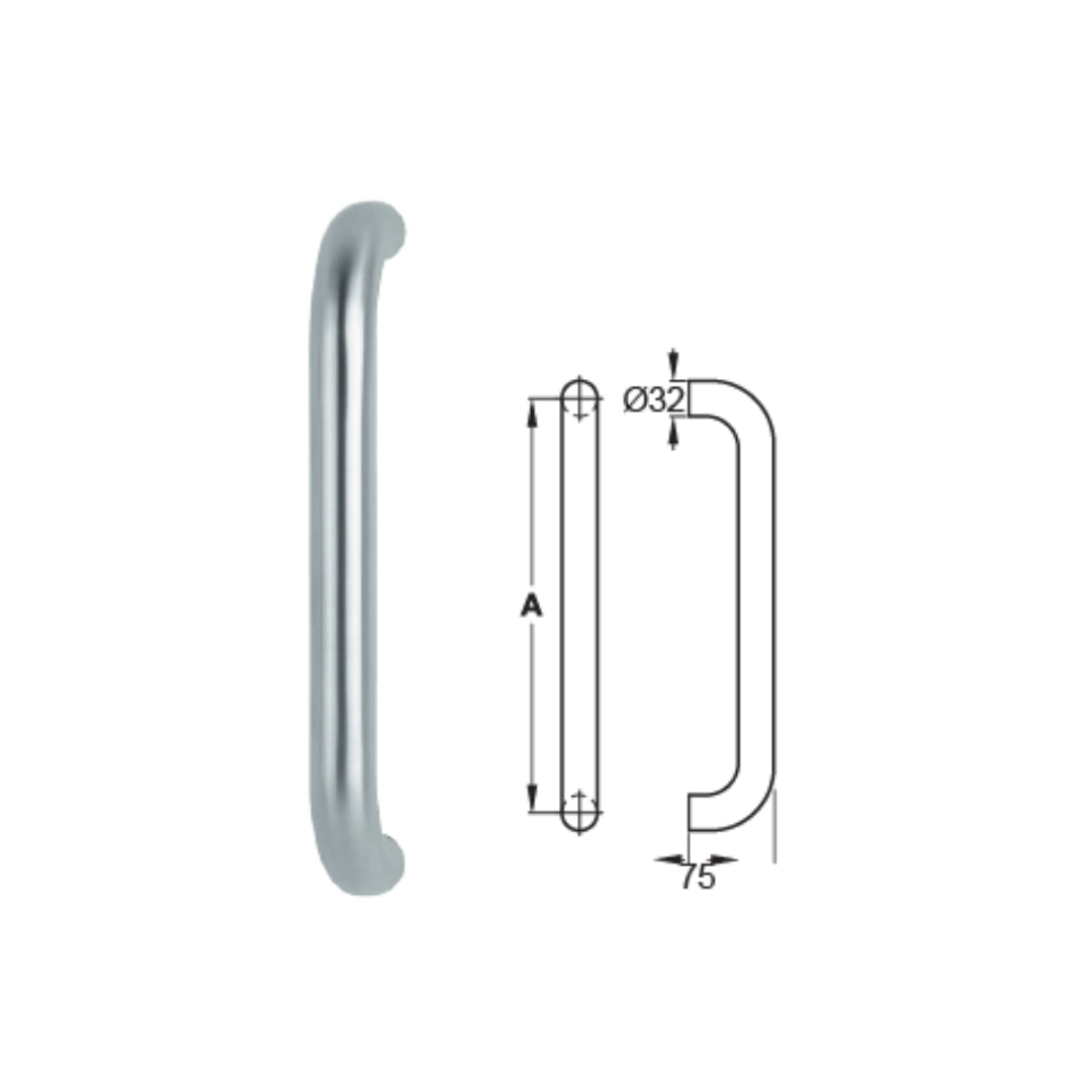 ដៃទាញទ្វារកញ្ចក់អ៊ីណុក300មម PULL HANDLE ST.ST.MATT32X300MM (903.07.910)